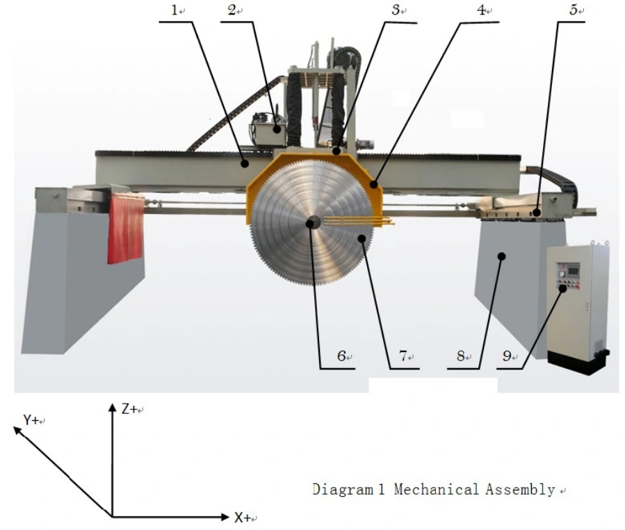 龙门多片组合锯 : 采用金刚石工具和高速切割技术,适用于高效切割各种厚度的石材板材(厚度如17毫米,20毫米,30mm等)。