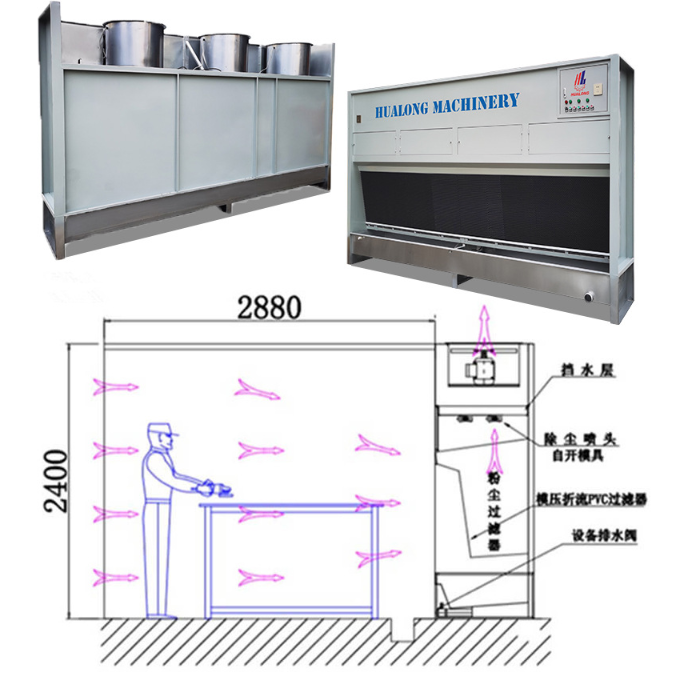 该环保设备用于净化污染空气。它能吸入含有漆雾或粉尘的空气,使空气通过水幕和“沸腾混合通道”,然后分离、沉淀,消除有害的漆雾颗粒和灰尘颗粒。从而为操作人员提供一个洁净的工作环境。本设备广泛用于石材厂、卫浴厂、陶瓷厂、混凝土、化工、木材加工、喷漆房等车间。