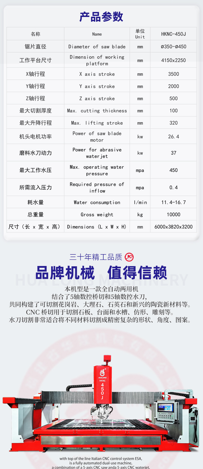 HKNC-450J 5 Axis Stone CNC SawjetHKNC-450J 五轴数控水刀桥切一体切割机